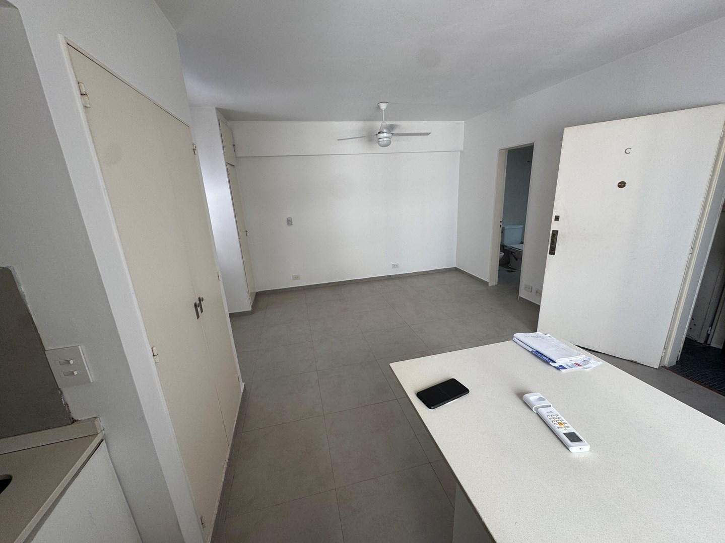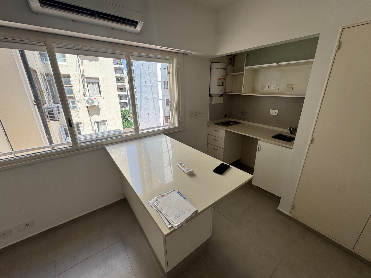 HALL, MONOAMNBIENTE, COCINA AMERICANA CON BARRA, BAÑO COMPLETO.
